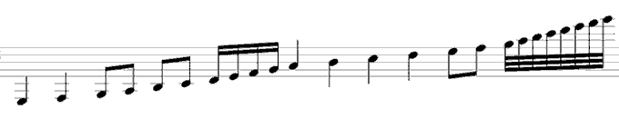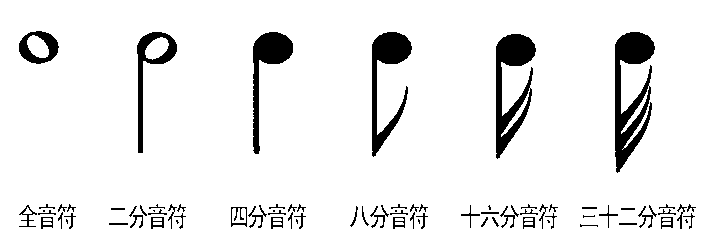 下面是五线谱上的音符、时值图例及说明: ![]() ●五线谱的一个音符可以由上图所示的三部分组成:符头(Note Head)、符干(Note Stem)、符尾(Note Flag);符头可以是空的,也可以是实的,这两者时值相差一半;除了全音符之外,其它的音符都有符干,增加符干原来时值也减一半;符尾可以有多个,每增加一个符尾原来的时值也是变成原来的1/2; ![]() ●上图列出了常见的音符类型,五线谱中使用这些不同的类型代表不同的时值,其中全音符(a whole note)相当于4拍,二分音符(a half notes)为二拍,四分音符(a quarter note)为1拍,八分音符(an eighth note)为半拍,十六分音符(a sixth note)为1/4拍,三十二分音符(a 32th note)为1/8拍,六十四分音符谱面上比较少见,其时值为1/16拍,注意一下它们的规则是时值依次为原来的1/2,其中的变化分别为:增加符干/涂实符头/加1个符尾/加2个符尾/加3个符尾; ![]() ●关于符干的方向,一般情况下,3线以下的音符干向上,3线以上的符干向下;在多声部记谱中,可以根据声部来确定符干的方向,同一声部的朝向一个方向,以便于区分; ●相同时值的有符尾的一些音符连在一起时常常连写,连写时的连接线个数就相当于符尾的个数,通过连接线的数目来计算时值; 五线谱学习相关文章: 五线谱基础知识-线/间/音高及吉他品位对应 五线谱基础知识-时值 五线谱基础知识-升降记号 五线谱基础知识(吉他)-左手指法标记与弦序标记 五线谱基础知识(吉他)-右手指法标记与反复记号 五线谱基础知识-五线谱各调式及升降号 五线谱基础知识(吉他)-常用速度标记/节拍 五线谱基础知识(吉他)-常用力度/强弱标记/节拍 吉他学习-五线谱基础-5-五线谱中的调(号) |