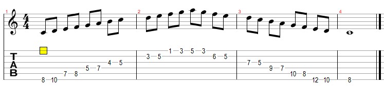 下面这条练习是一个比较特殊的C大调音阶练习,每条弦只使用2个音,因为只使用2个音,所以左手指法安排有更多的可能性可以尝试,除了象音阶练习一样应该注意到左右手及其它一些要领之外,在这个练习中要侧重于熟悉掌握小二度和大二度音程在吉他上的实际表现: (1)小二度音程在一条弦上的表现,这个很简单,相邻的两个品格就是小二度;大二度音程在一条弦上的表现是两个音之间隔一个品格; (2)C大调音阶构成中,3/4和7/8两个音之间为半音关系或者说是小二度,其它的都是全音关系或者说都是大二度音程; (3)小二度音程在邻弦上的表现:如果是在2/3弦,小二度音程表现为相隔两个品格,例如3弦4品的B与2弦1品的C,这个谱例中3弦与2弦之间是一个大二度音程(C/D);如果是在其它的邻弦上,则是相隔三个品格,例如谱例中2弦5品的E与1弦1品的F; (4)大二度音程在邻弦上的表现:如果是在2/3弦,大二度音程表现为相隔一个品格,例如谱例中3弦5品的C与2弦3品的D;在2/3弦之外其它邻弦上大二度的表现为相隔两个品格,如谱例中6弦10品的D与5弦7品的E; (5)在这个练习中换弦时,应尽量按照音阶中相应音之间的大小二度关系及这两种音程在邻弦上的表现来确定位置,而不是去死记实际的按弦位置; (6)左手指法安排:考虑到上行时食指的扩展,建议每条弦上的第二个音使用4指,这对食指扩展中保持原来的音最有利;下行时,因为是4指扩展到邻弦较远的位置,所以换弦之前的手指使用食指最好,这样在小指扩展按弦过程中,食指可以尽可能的保留上一个音的按弦;当然,也可以使用其它的指法安排进行相应的练习; ![]() 其它相关链接: 吉他学习-C大调低把位音阶 乐理知识及其在古典吉他中的实际应用-低把位C大调音阶/C Major Scale with Open String(Music Theory and Its Application in Classical Guitar) 每条弦3个音的小二度音程(半音阶)练习--吉他与乐理(Guitar and Music Theory) 半音阶练习中要注意的一些要点提示 乐理知识及其在古典吉他中的实际应用-半音阶练习/爬格子/Chromatic Scale Exercises(Music Theory and Its Application in Classical Guitar) 吉他新手学习—半音阶练习(爬格子)的一些基本类型及变化(1)(Basic Chromatic Scale Exercises and its changes on Guitar ) 什么是小二度?--吉他与乐理(Guitar and Music Theory) 什么是大二度?--吉他与乐理(Guitar and Music Theory) |