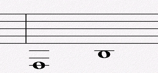 音符记写在下加线与间的情形