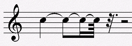 延音线 延音线:记写在音高相同的两个音上的弧线,对于基本音符和附点音符组合无法记写的时值,可用延音线将各种时值的音符连结起来。 延音线可以连续使用,但不能一次将三个或三个以上同音高的音连结起来。 延音线连接(包括连续使用)的各音只演奏第一个音,时值为延音线所连接的音的时值之和。 ![]() 其它相关链接: 吉他学习-看我学和声与乐理目录导航(Harmony & Theory) 吉他学习-阅读资料导航—乐理知识学习资料 |