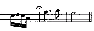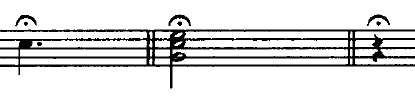 延长号记在音符或休止符上,表示根据需要将音符或休止符自由延长(不象附点延长固定的时值);