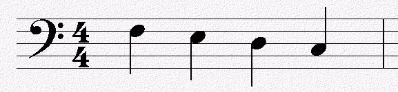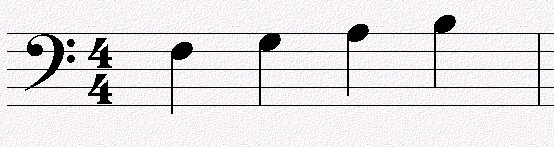 低音谱号音名音高推算举例 谱例-1:谱号为低音谱号,四线上的音为小字组的F(f),后面3个音依次为:G(g)、A(a)、B(b);FGAB这是上升排列; ![]() 谱例-2:谱号为低音谱号,四线上的音为小字组的F(f),后面3个音依次为:E(e)、D(d)、C(c);FEDC这是下降排列; 谱例-3:更多音的排列如下 : ![]() 其它相关链接: 吉他学习-看我学和声与乐理目录导航(Harmony & Theory) 吉他学习-阅读资料导航—乐理知识学习资料 |