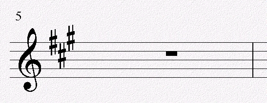 下图中:3个升记号:#F/#C/#G,为A调的调号,A调中包含#F/#C/#G三个变化音级: