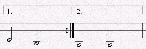 段落反复记号 段落反复记号由前反复记号和后反复记号组成,表示反复记号以内的部分重复演奏;乐曲从头反复时,前反复记号可以省略;前反复记号位于谱表开端,一定要记在谱号、调号、拍号的后面;每次反复时,不同的部分,要用括线括出,并用阿拉伯数字标出第几遍用;在歌曲中同一段歌词重复时,用罗马数字标出;以下是相关谱例示例。。 下图中左边为前反复记号,右边为后反复记号: ![]() ![]() ![]() 其它相关链接: 吉他学习-看我学和声与乐理目录导航(Harmony & Theory) 吉他学习-阅读资料导航—乐理知识学习资料 |