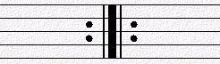 反复中包含反复时的标记/记号 段落反复标记可以应用于小节到整首乐曲的反复,也可以交替使用,如果后反复记号紧接前反复记号时,记号为( );但段落反复记号不能套用,也不能交错使用,如果在一个反复中包括其它小反复时,则需根据不同情况采用不同的反复记号,如用D.C.来表示从头反复;D.S.表示从记号 处反复。其它相关链接: 吉他学习-看我学和声与乐理目录导航(Harmony & Theory) 吉他学习-阅读资料导航—乐理知识学习资料 |