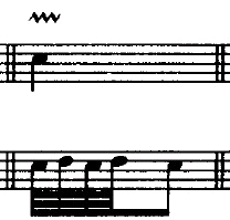 顺波音特点/演奏/标记 由主要音开始,很快进入上方邻音,又立即回到主要音,叫顺波音;在顺波音中上方邻音出现一次的,叫单顺波音;出现两次的,叫复顺波音;顺波音演奏时占主要音的时间。 单顺波音用短波浪线标记;复顺波音用长波浪线标记;在顺波音记号上方的变音记号,表示上方邻音的升高或降低。 单顺波音: ![]() 复顺波音: ![]() 其它相关链接: 吉他学习-看我学和声与乐理目录导航(Harmony & Theory) 吉他学习-阅读资料导航—乐理知识学习资料 |