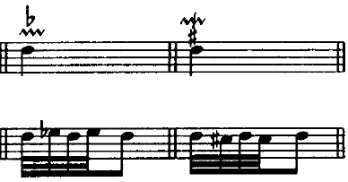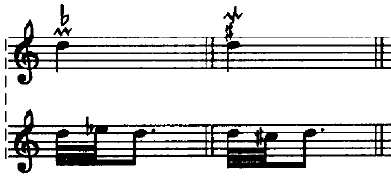 顺波音记号的上方或逆波音记号的下方还可以带有变音记号,用来表示辅助音的升高或降低。